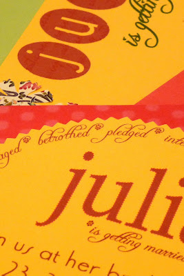 As I glance out my window, the branches of the trees in my yard are still bare, the grass is still crunchy and tan, and the sky is kind of a gray-ish nothing. But these bridal shower invites make me remember that spring is rapidly approaching… pink, yellow, orange, green… love it!