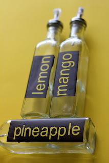 Of course, these homemade snowcone syrups needed customized serving bottles as well. We picked up some glass ‘vinegar’ bottles at Dollar Tree…