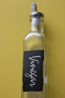 …covered over the vinegar label with squares of brown vinyl (after first trying unsuccessfully to remove said labels- I think they’re attached on the inside)…
